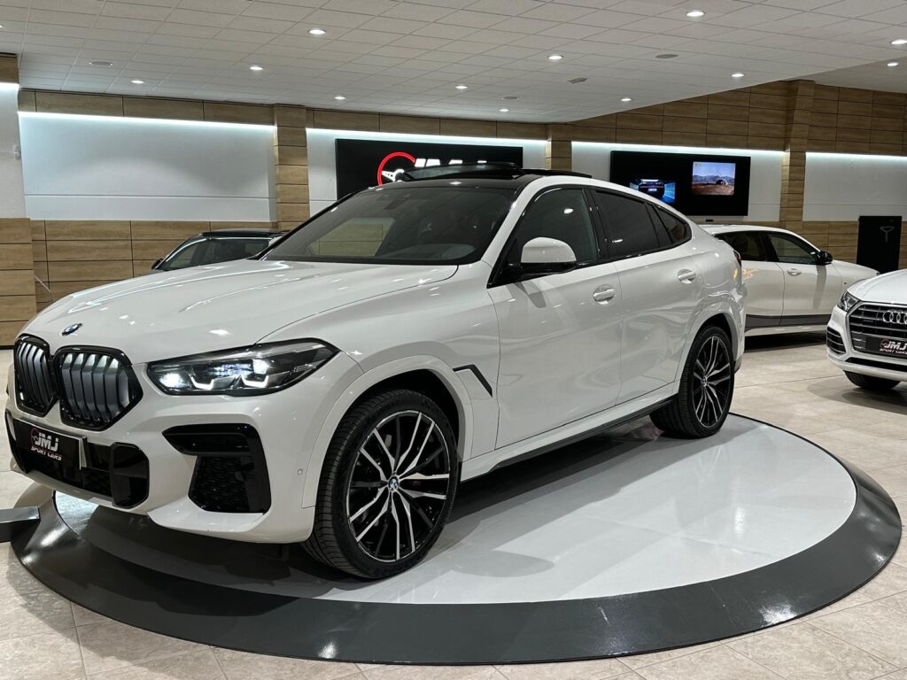 Se vende espectacular BMW X6 Nacional del 11/2021, equipado con techo panorámico, paquete M exterior/interior, alerón M, parrilla BMW “ICONIC GLOW”, asientos M deportivos en cuero eléctricos con memorias, ajuste lumbar y calefactados, volante deportivo M en cuero con levas y ajuste eléctrico, head up display, faros full led, asistente luz de carretera, modos de conducción, auto-H, navegador, carplay, cámara trasera, sensores de aparcamiento delanteros y traseros, aparcamiento asistido, paquete retrovisores plegables eléctricos, climatizador bizona, iluminación interior en varios colores, iluminación exterior, portón maletero eléctrico, asistencia a la conducción, asistente a la dirección, aviso salida de carril, aviso colisión frontal, aviso de presencia de peatones, frenado de emergencia PDC activo, ayuda en pendiente, detector de señales de tráfico, tren de rodaje deportivo, control crucero adaptativo, limitador de velocidad, luces y limpias automáticos, llanta 22″ deportiva bicolor, molduras exteriores en color negro, cristales traseros oscurecidos, interior del techo en color negro y mucho mas… Se entrega transferido y con 1 año de garantía. Atendemos llamadas, correos y Whatsapp . Para no perderse nuestras novedades síganos en Instagram @jmjsportcars_ Posibilidad de entregar en cualquier parte de España, consúltenos. Este anuncio no es vinculante, puede contener errores, se muestra titulo informativo y no contractual.